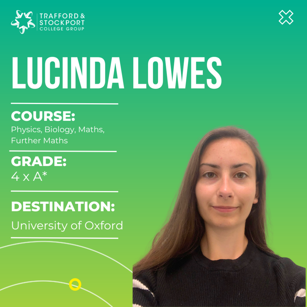 Top performing student was Marple Sixth Form College student Lucinda Lowes, who scored A* across the board in Physics, Biology, Maths and Further Maths and is now bound for the University of Oxford to study Physics: a four-year course with integrated Masters.