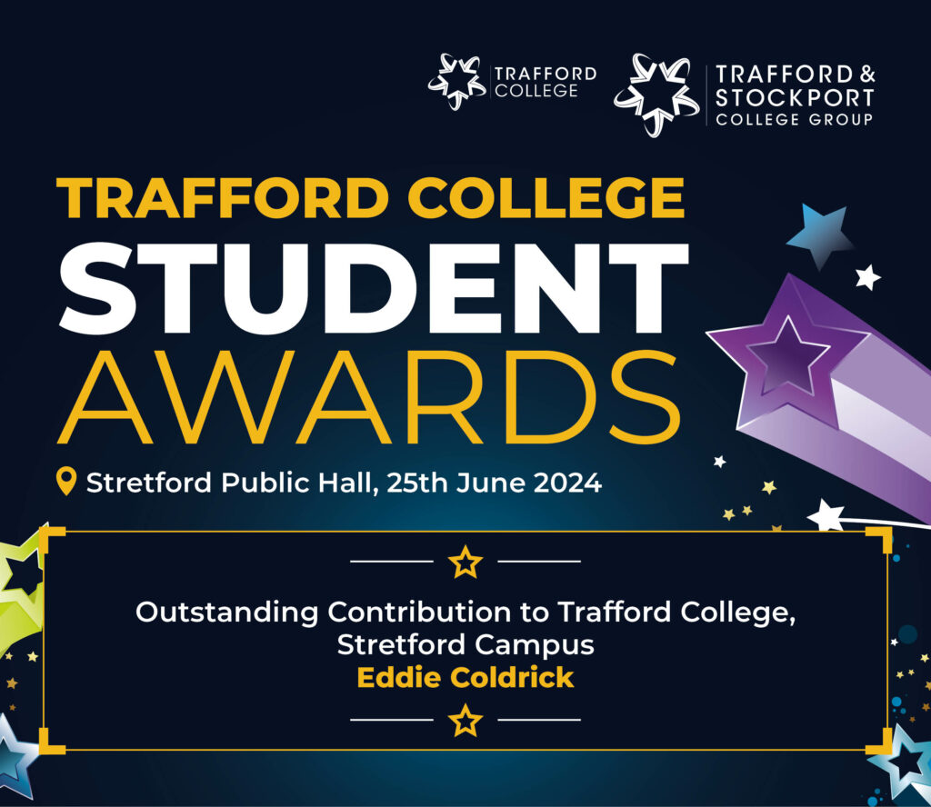 Our Outstanding Contribution award for Trafford College, Stretford Campus goes to Eddie Coldrick. Congratulations to Eddie