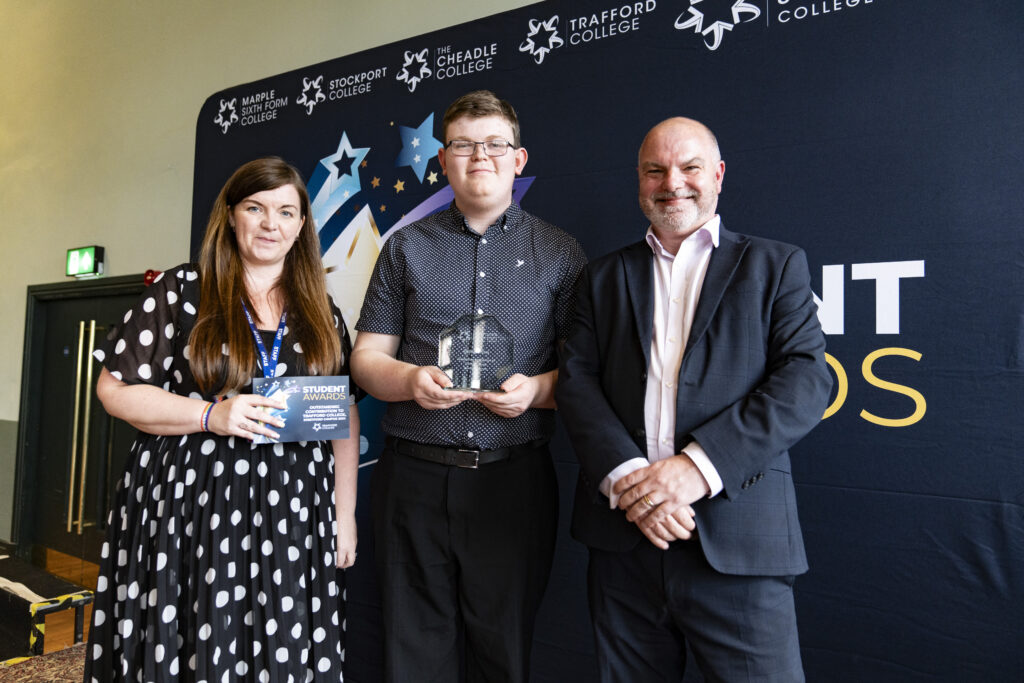Our Outstanding Contribution award for Trafford College, Altrincham campus goes to George Molyneux. Congratulations to George.