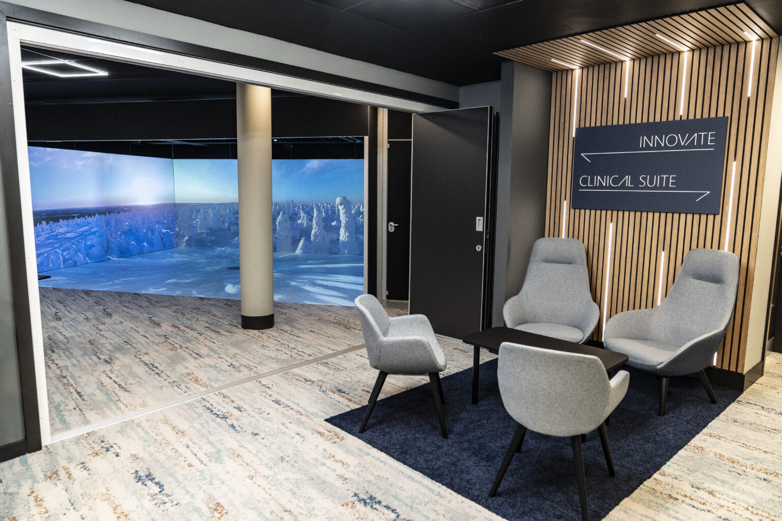 Unlock the potential of your team with our cutting-edge Innovation Hub, an immersive technology environment designed to elevate collaboration, creativity, and learning. Our state-of-the-art CAVE (Cave Automatic Virtual Environment) harnesses advanced virtual and augmented reality to deliver unique experiences for business meetings, internal training, and strategic thinking sessions. Redefine how your people connect, learn, and innovate.